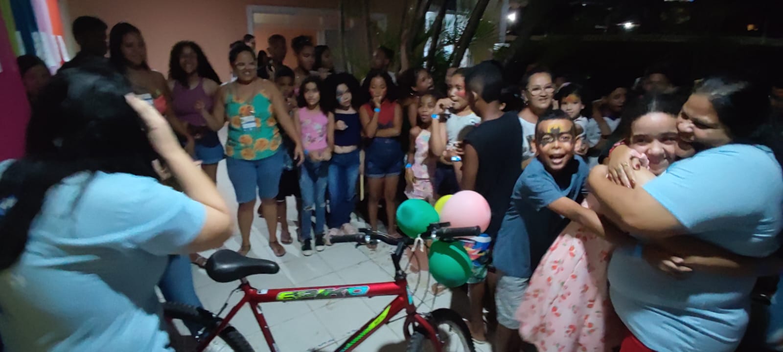 A realização da festa foi possível pela ajuda de muita gente amiga. Contamos com a colaboração de voluntários para a organização das atividades, distribuição de lanche e promoção de jogos e brincadeiras. Muitos benfeitores nos ajudaram com a doação de doces, bombons e pipocas para a confecção das sacolinhas, além da doação de lanches, água, refrigerante e duas bicicletas para o sorteio entre as crianças.
